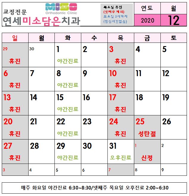 2020년 12월 진료시간 안내