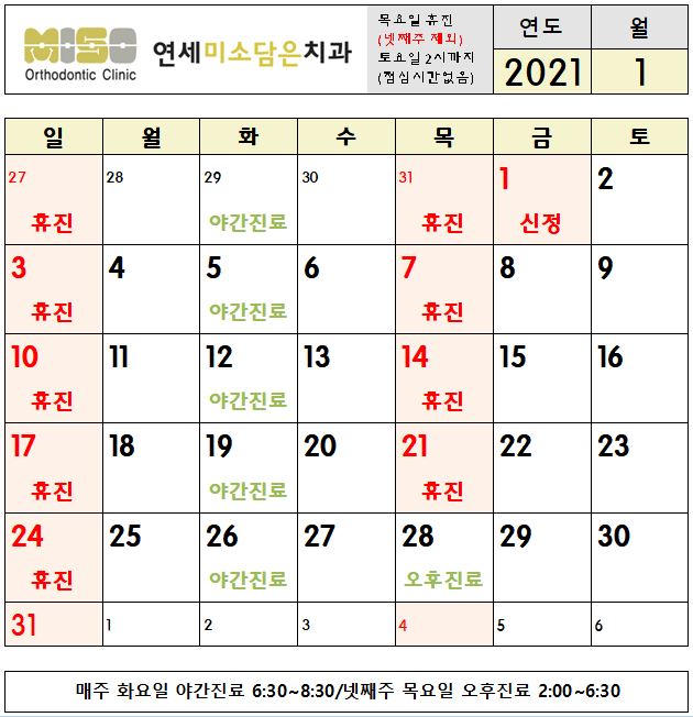 2021년 1월 진료시간안내
