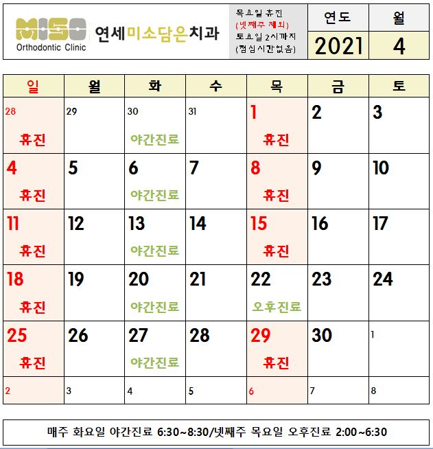 2021년 4월 진료시간안내