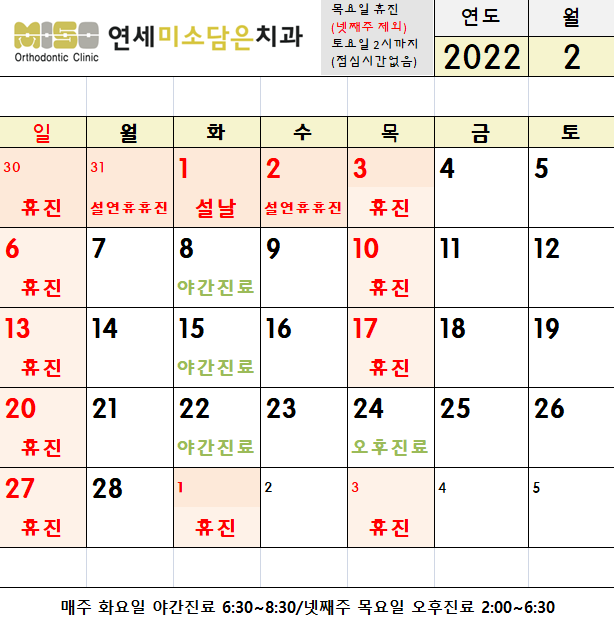 2022년 2월 진료시간, 2/1(화) - 2/3(목) 설 연휴 휴진 안내