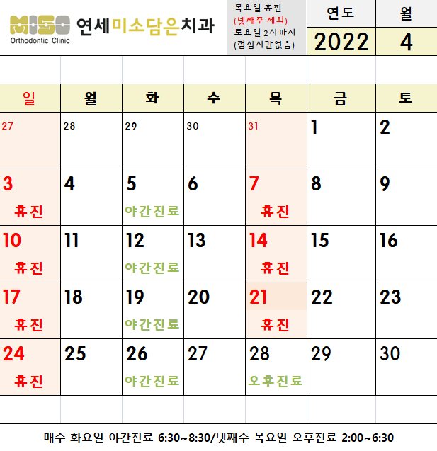 2022년 4월 진료시간 안내