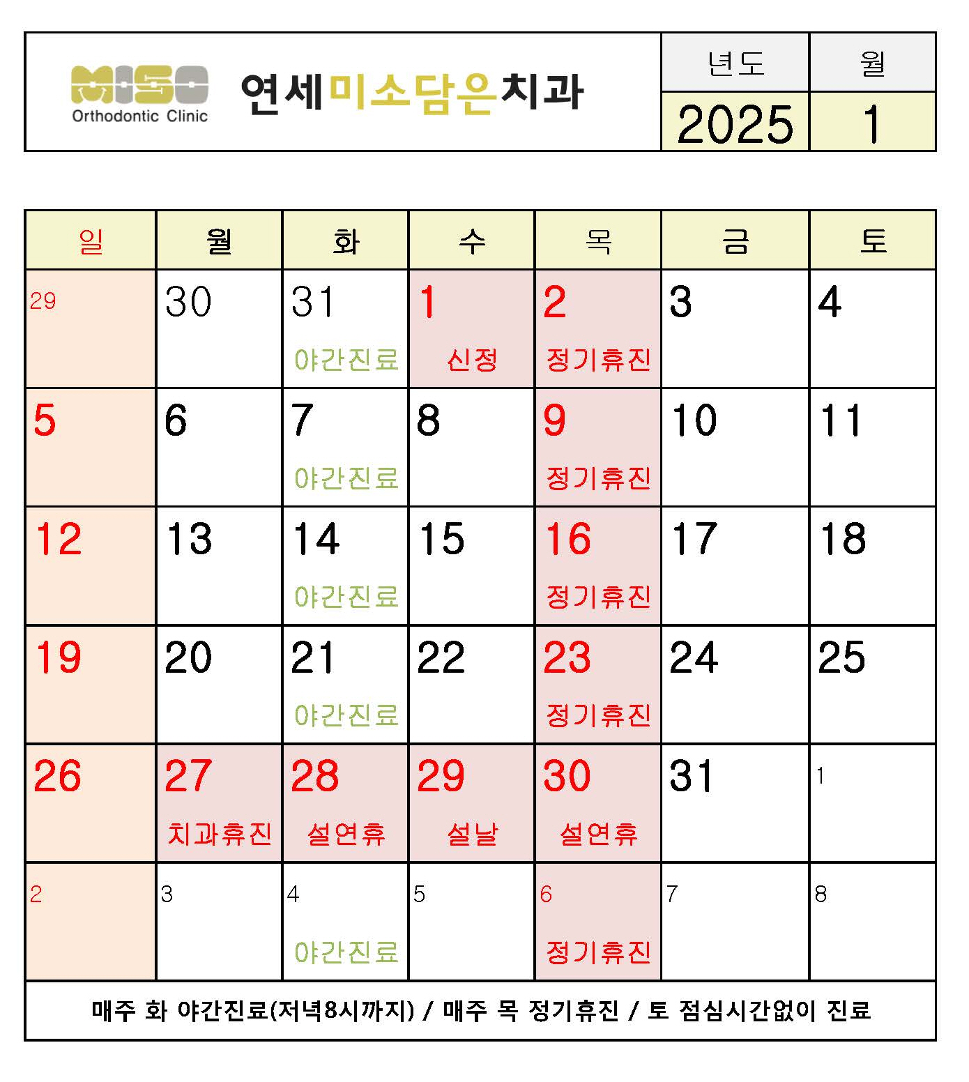2025년 1월 진료시간안내