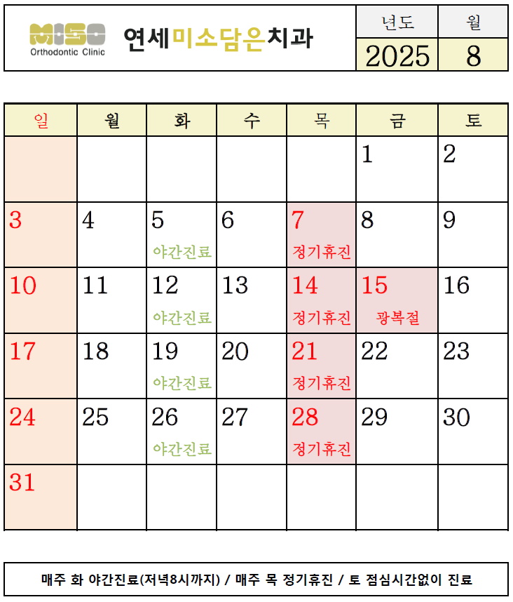 25년 8월 진료시간 및 휴진안내