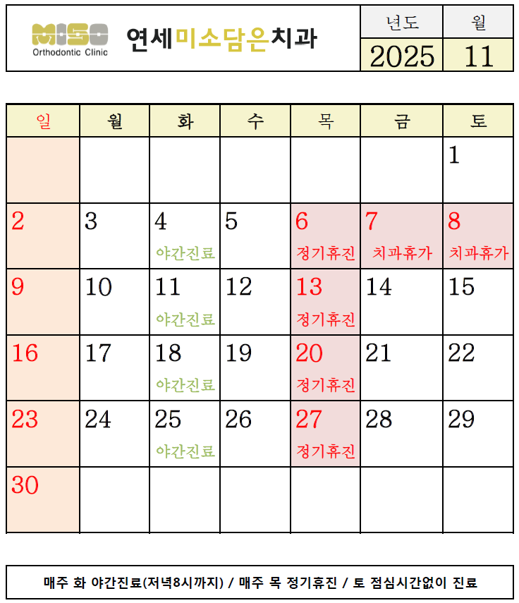 11월 진료시간안내 및 11월6일(목)-8일(토) 휴진 안내